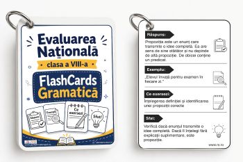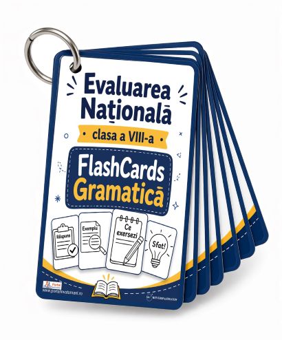 De aceea, am decis sa iti oferim sansa sa cumperi online din orice oras in care te afli lucrarea Flash Cards de Nota 10 pentru exercitiile de Gramatica de la Evaluarea Nationala - clasa a VIII-a.